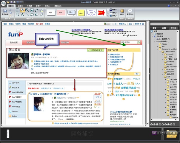 第一個是超重量級(痴肥?)的螢幕照相軟體 SnagIt 9.0 ,看圖吧!