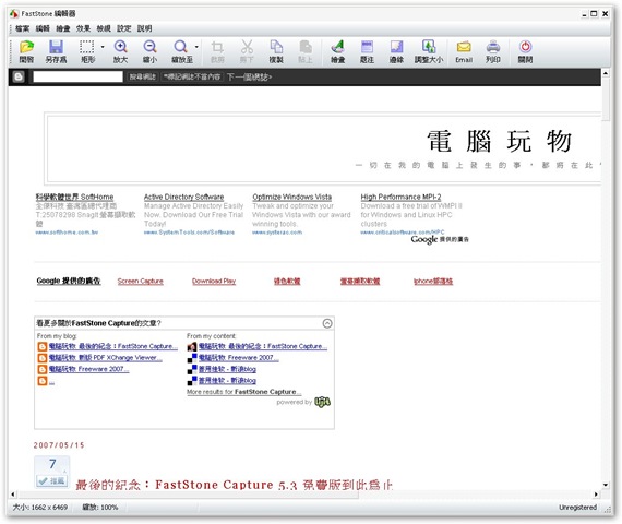 第二個是輕量級的FastStone Capture 5.3,聽說這一個版本的還是免費的,新的版本就需要付費,可參考電腦玩物: 最後的紀念:FastStone Capture 5.3 免費版到此為止