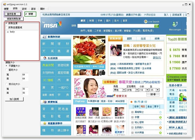 (URL2JPEG 1.1自訂擷取區域畫面 )